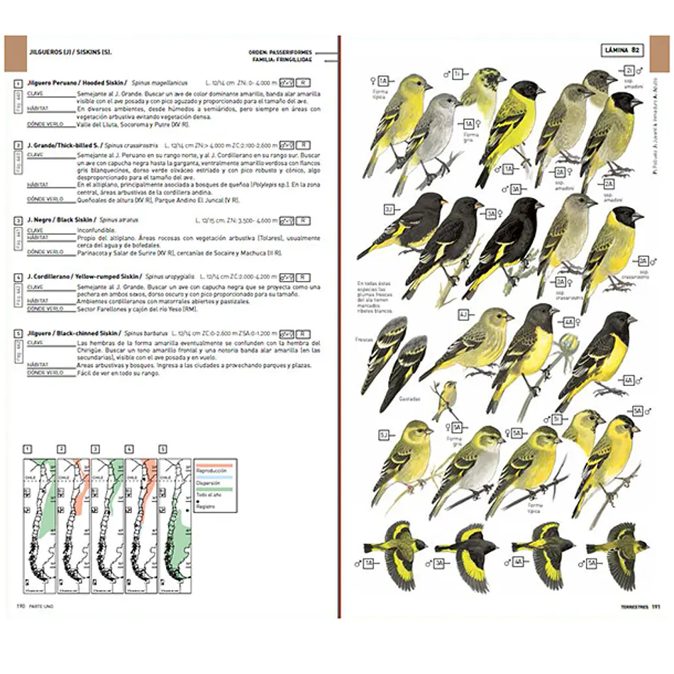 "Las Aves de Chile: Guía de Campo y Breve Historia Natural", es una obra actualizada de última generación, editada en noviembre de 2017, presenta nuevas ilustraciones de todas las aves regularmente observadas en Chile, considerando sus desarrollos desde polluelos hasta aves adultas, dimorfismos, formas de coloración, detalles de comportamiento y otros. Los mapas han sido actualizados y se incorporan nuevas claves para la identificación de grupos difíciles e ilustraciones de los huevos de por lo menos cada familia presente en el país.