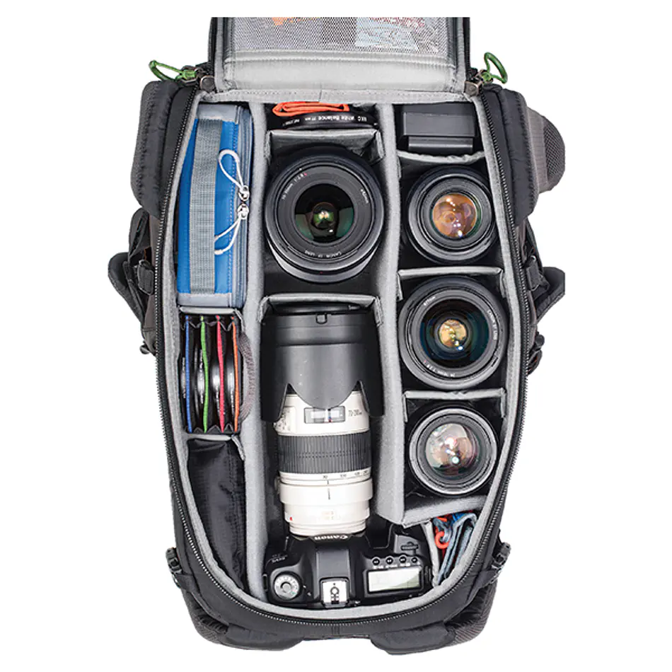 La mochila BackLight 26L es perfecta para aquellos viajeros amantes de la fotografía que necesitan transportar el equipo fotográfico completo y poder acceder a él de manera cómoda y segura. Este modelo tiene un acceso trasero de fácil acceso que permite llevar el cuerpo DSLR y entre 4 y 6 lentes, flash y otros accesorios.